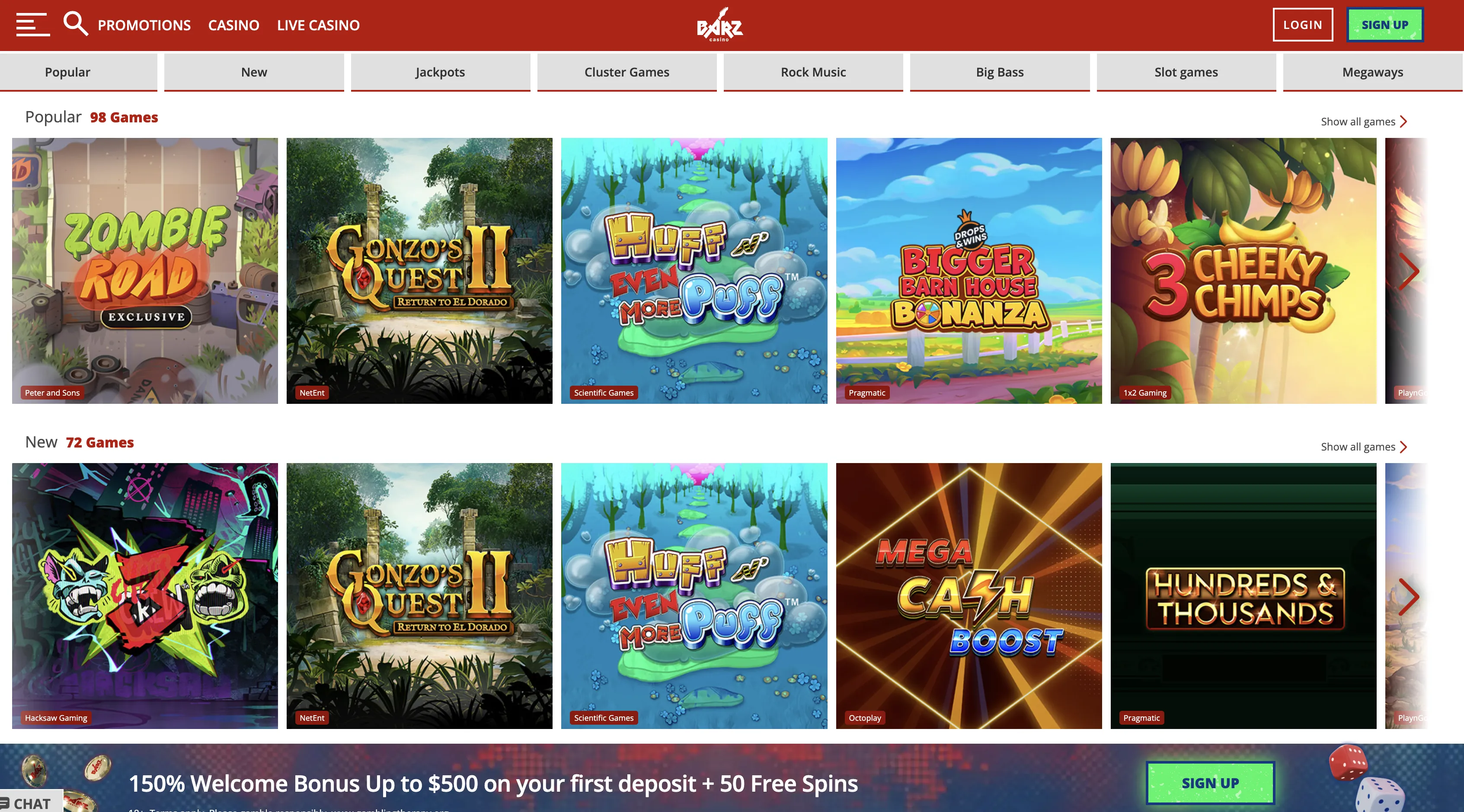 When you land on the main Barz Casino login screen you’ll see just how many games the site has available – I counted more than 6,000 while writing this review, and you’ll see titles from pretty much every game developer you could imagine, including Play’n GO, NetEnt, Games Global/Microgaming, Pragmatic Play, Red Tiger Gaming, Quickspin, Elk Studios, and more!