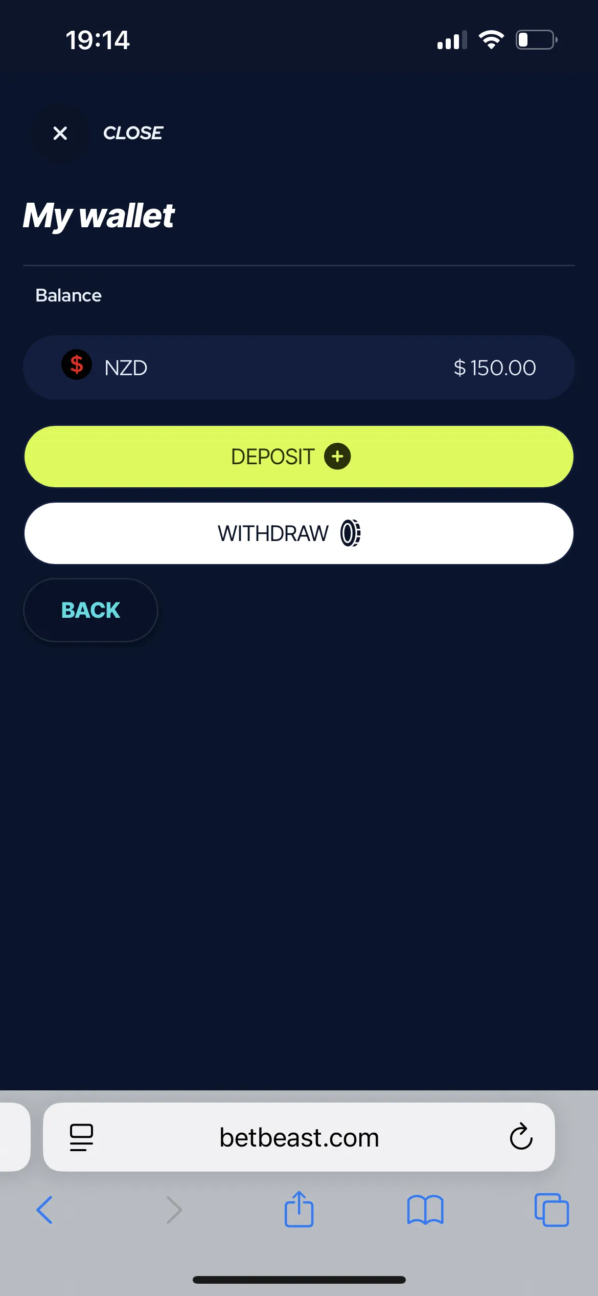 BetBeast doesn’t disappoint when it comes to the choice of currencies. Currently, it accepts EUR, USD, AUD, CAD, NZD, NOK, BRL, INR, JPY, PLN, RUB, ZAR, BTC, BCH, ETH, LTC, DOG, and USDT. Further, I provided a list of available deposit and withdrawal options for Kiwis in 2025: