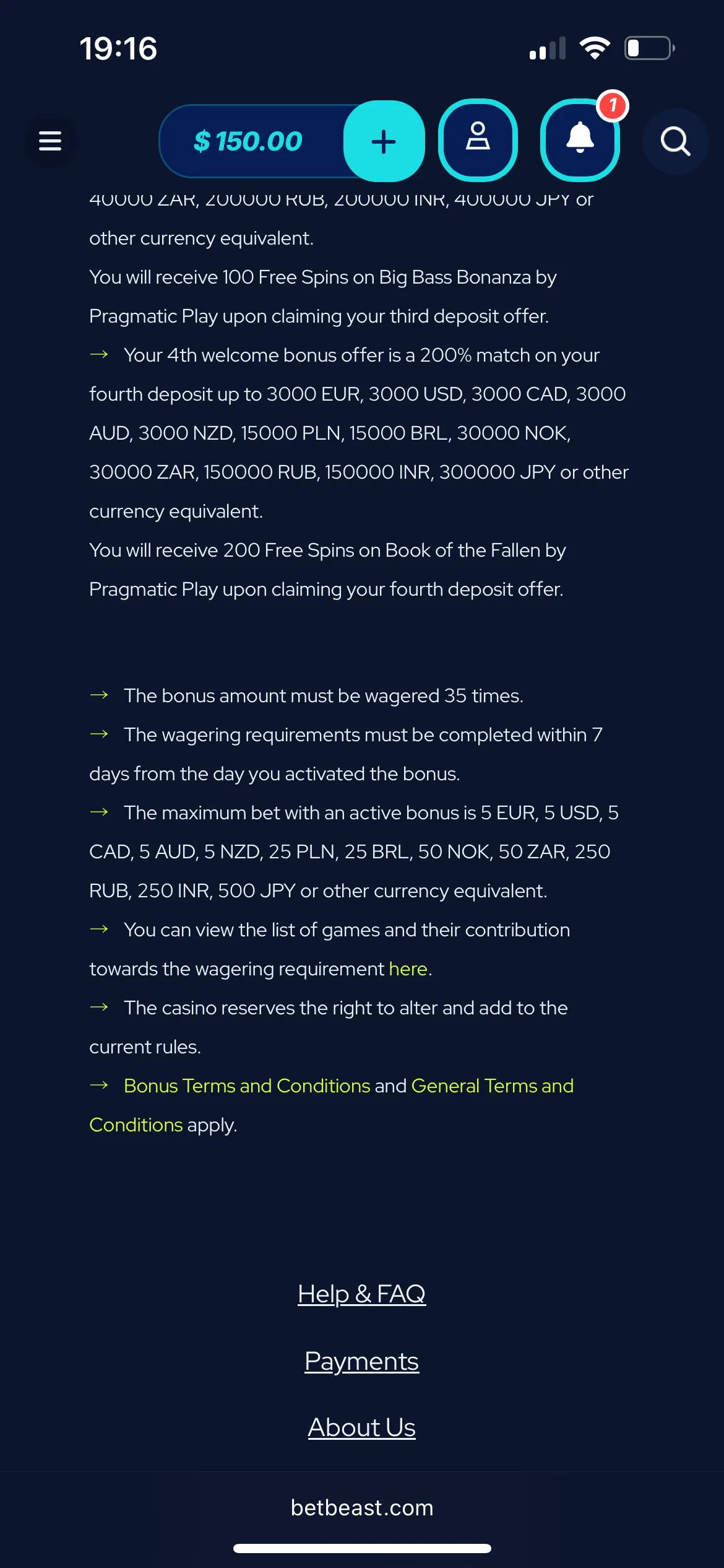 There is age verification that requires all players to be at least 18 years old. Also, you can easily find information about the license to feel safe before you decide to play for real money. To protect customers and ensure a safe environment for all, BetBeast complies with anti-money laundering and counter-terrorist financing laws.