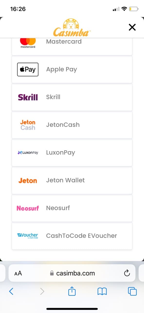 As I have mentioned in the beginning of my review, Casimba has a chocka of payment methods catering to players with different preferences. The payment methods cover bank cards, bank transfers, prepaid cards, and e-wallets. Let’s take a squiz at actual deposit and withdrawal methods.