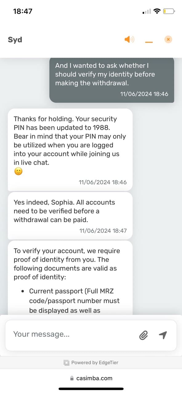 Customer Service at Casimba Casino