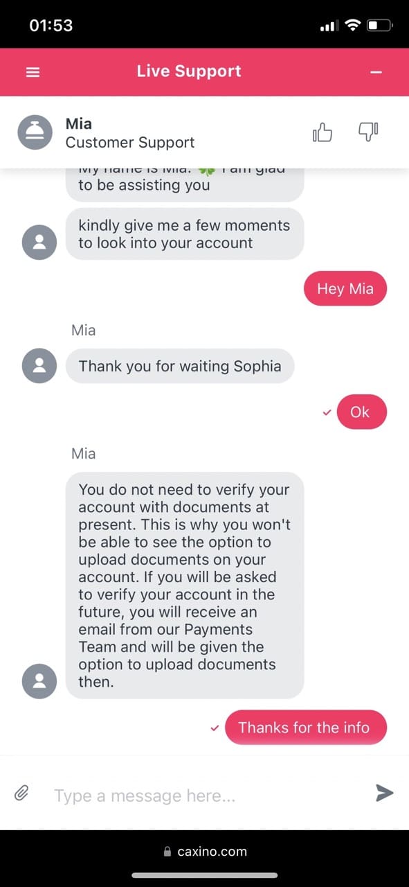 Customer Service at Caxino Casino