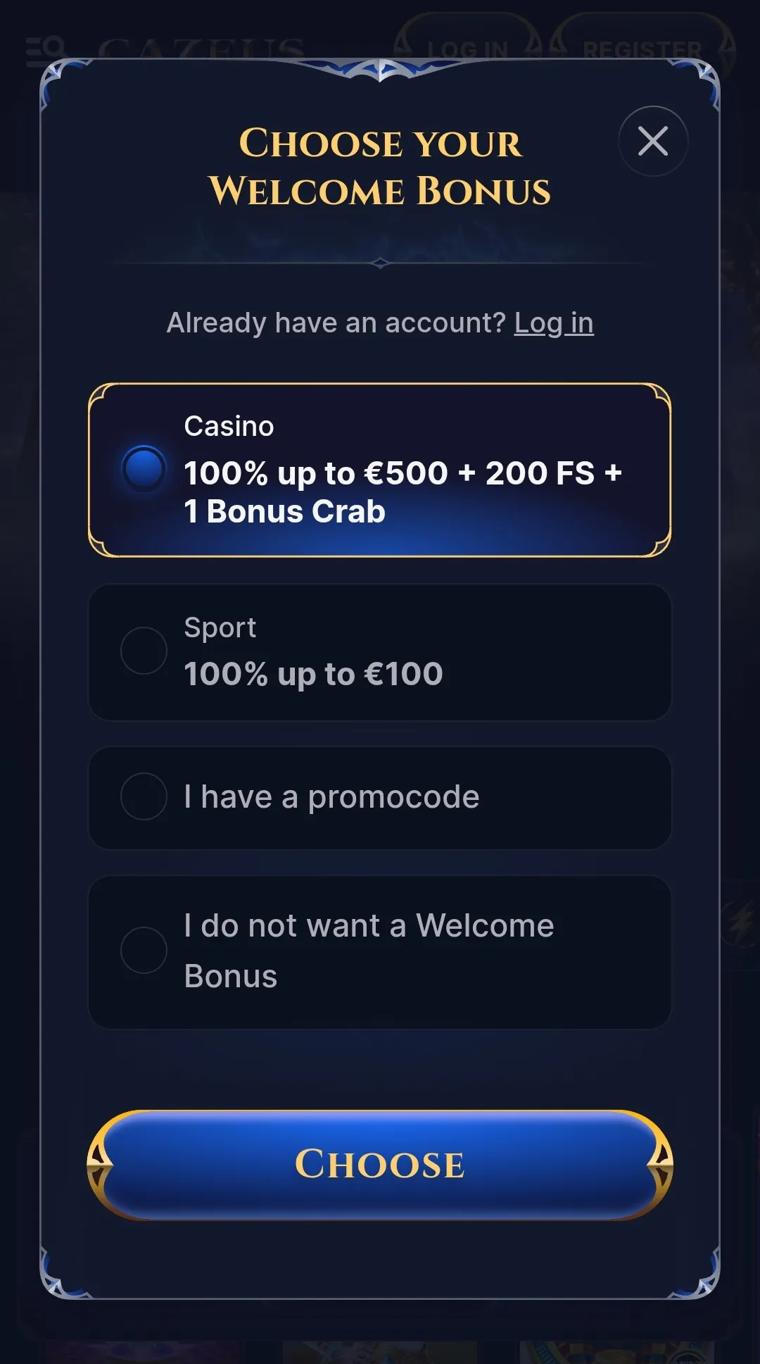 All new Cazeus Casino players can claim a generous welcome bonus, and this is delivered in the form of a 100% matched deposit bonus up to €500. Plus, you also get 200 free spins. The minimum deposit for the welcome bonus is just €20, and the wagering requirements I found to be really fair at just 35x!