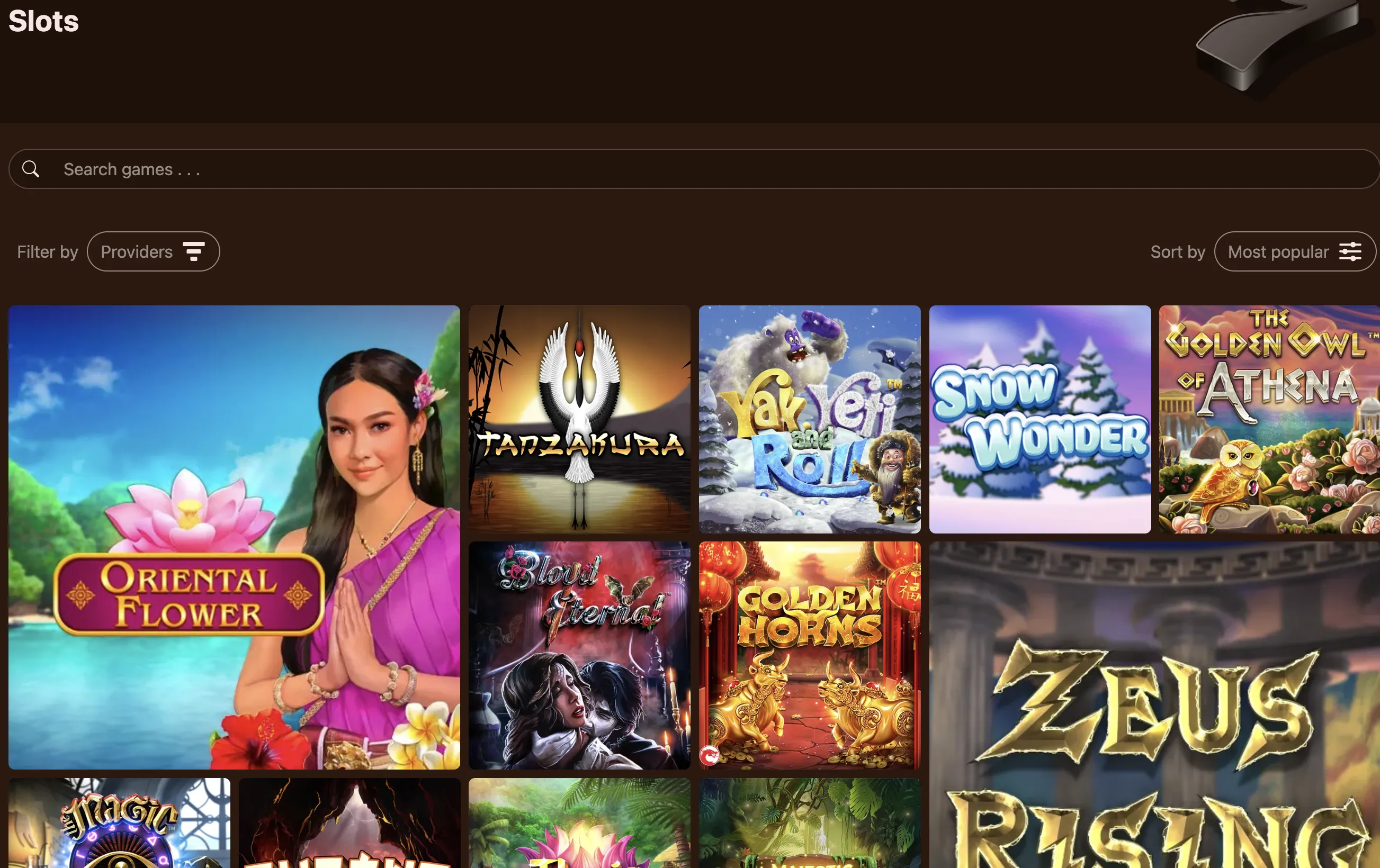 - Unique game selection (titles from smaller, less-well known providers like Rival and Saucify)
