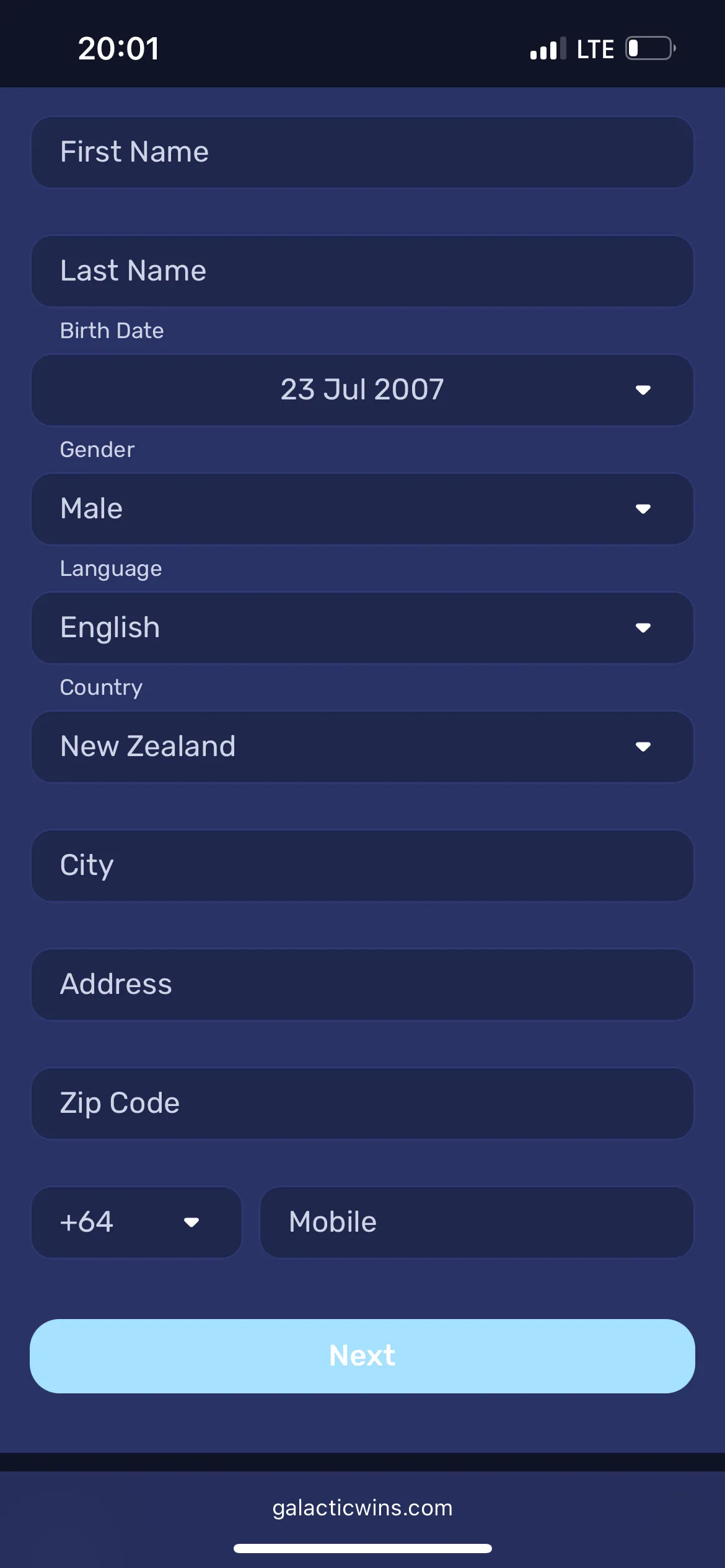 Registration at Galactic Wins Casino in New Zealand