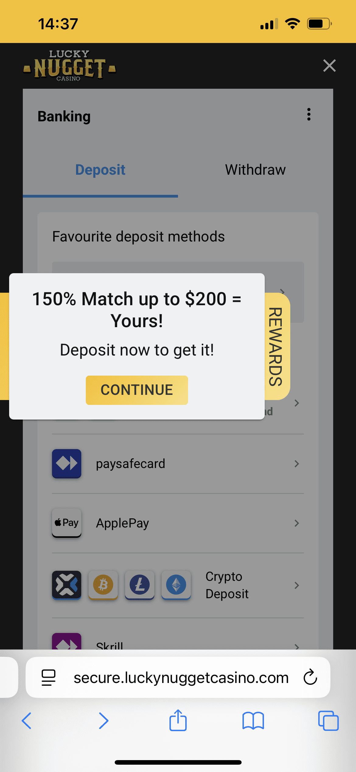 Lucky Nugget Casino shows two ways in, and you can claim one.