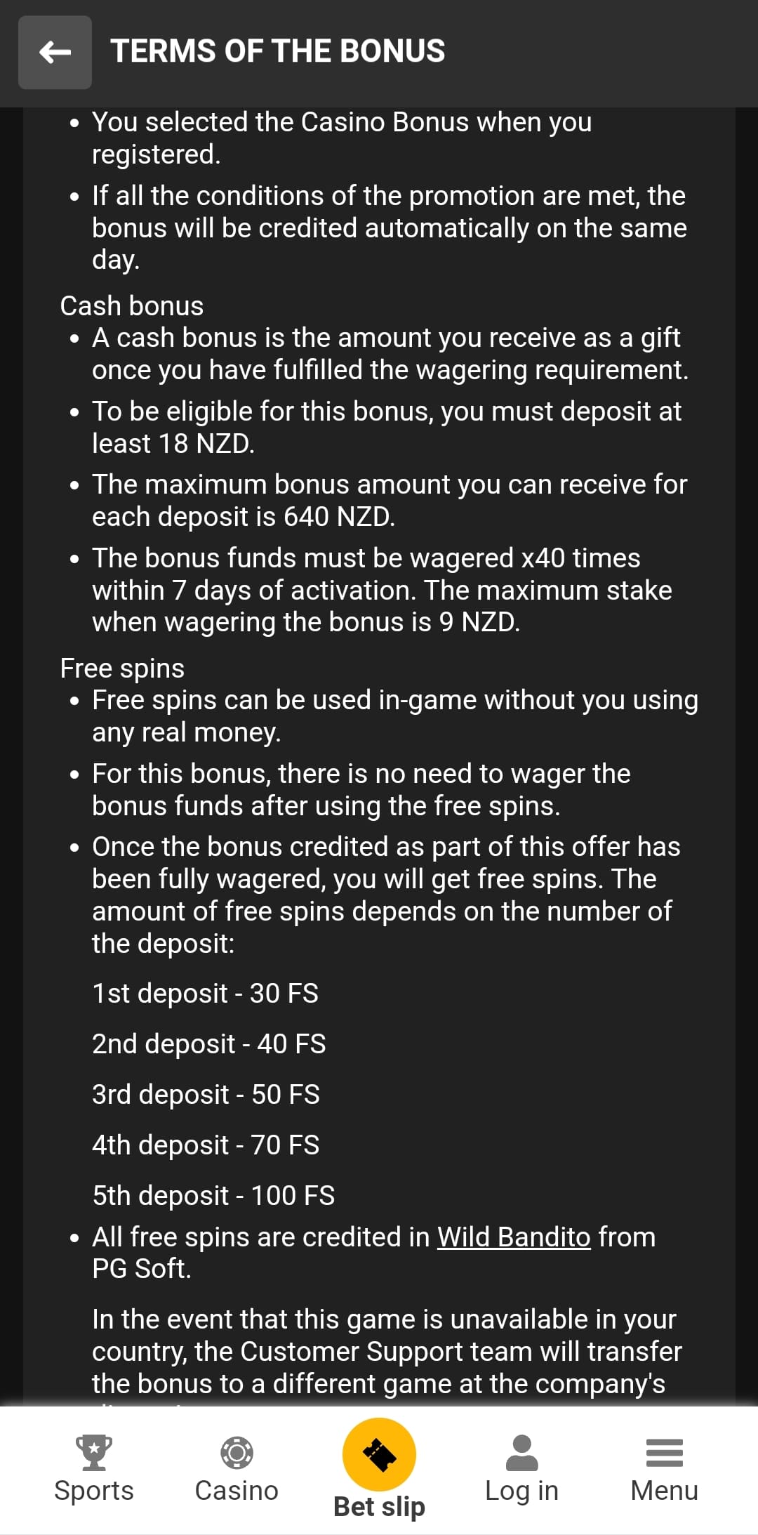 This sounds like a lot, but you’ll need multiple deposits to reach the headline numbers. If you can do that, sure – it adds up on paper. In practice, the x40 WR, 7-day window, NZ$9 max bet, and FS locked to Wild Bandito (PG Soft) make it a grind. I’d advise keeping deposits minimal if you must test it, because scaling early just magnifies exposure to fine print.