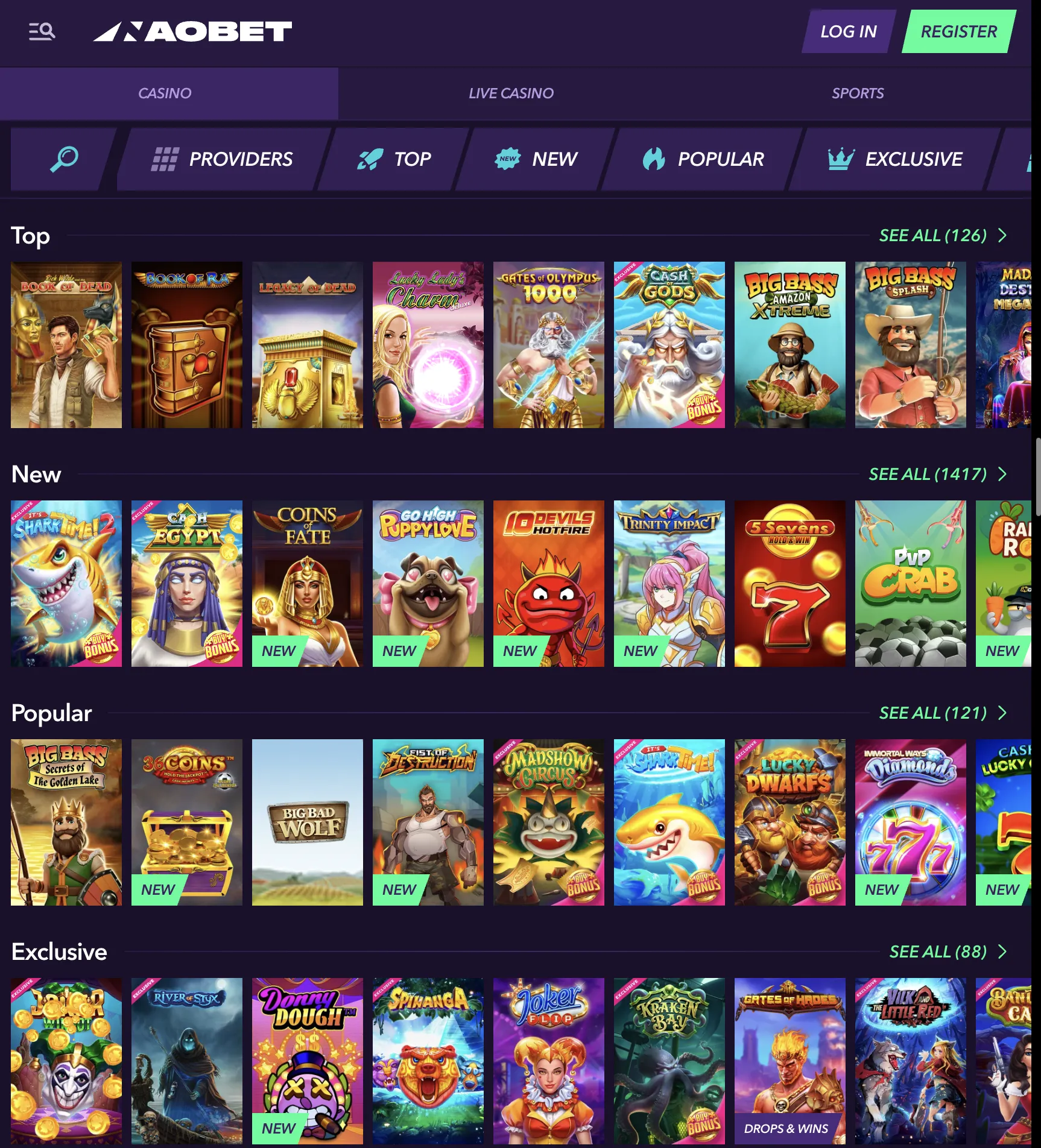 Design-wise, I also like how NaoBet’s been developed. It’s dark-themed with neon accents, and the layout makes navigation easy – with clear sections for Casino, Live Casino, Sports, and Promotions. The lobby has filters and a provider search, which I personally love as it lets you narrow down the game range and see titles from specific game developers only.