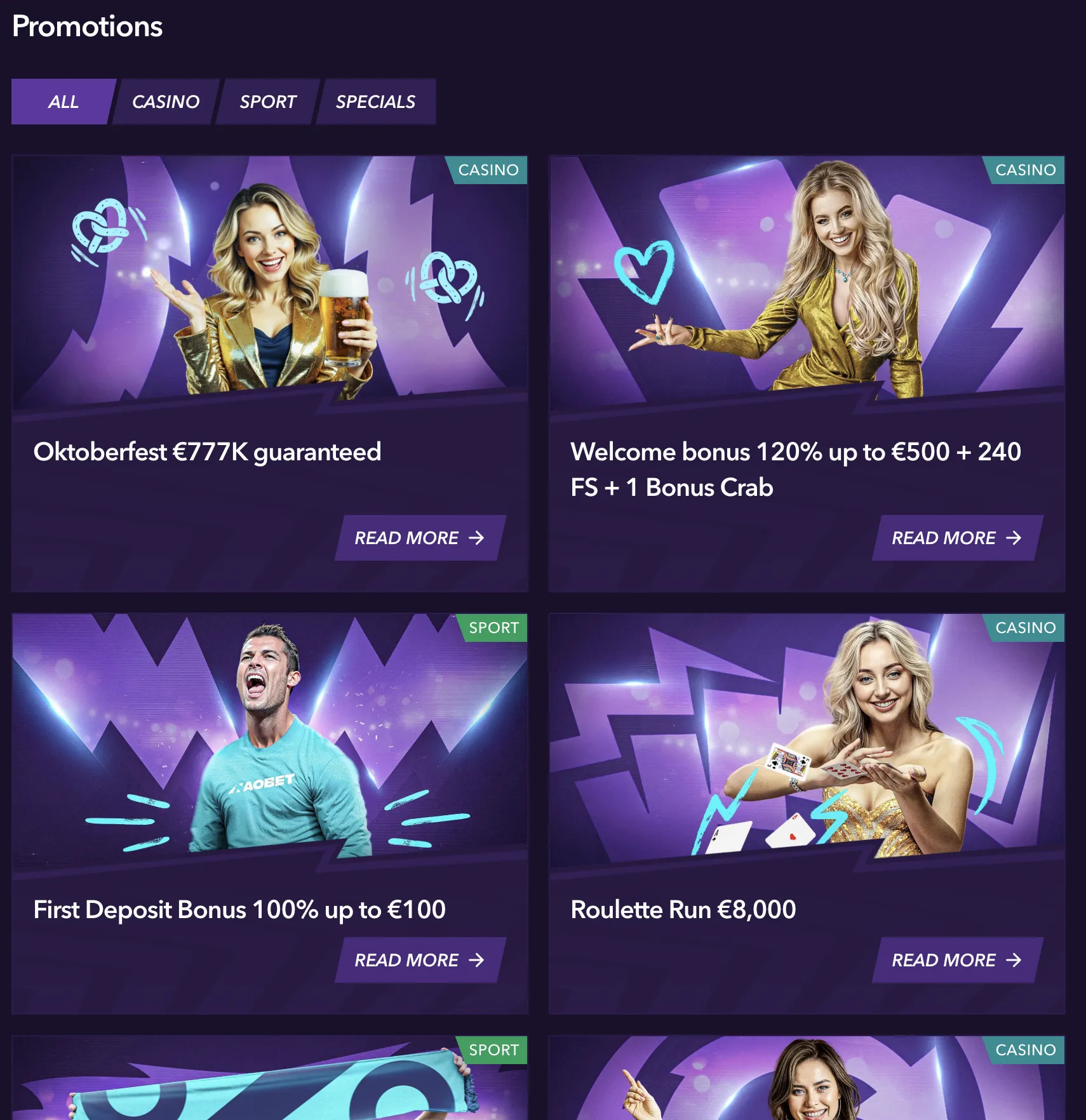 | Deposit and withdrawal | VISA, MasterCard, Paysafecard, Skrill, Skrill 1-Tap, Neteller, Cash2Code, Jeton, MiFINITY, USDT, Bitcoin, Ethereum, Litecoin, Ripple, USDCoin, Bitcoin Cash, Dogecoin, Cardano |
