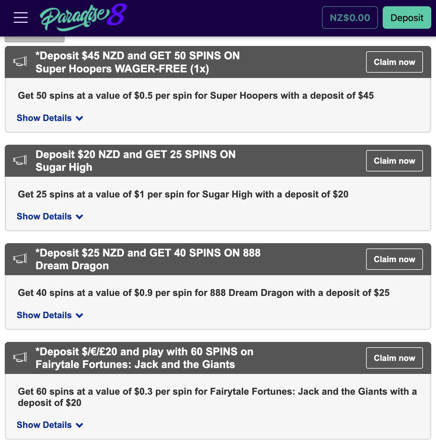 Bonuses at Paradise 8 Casino Online Casino NZ