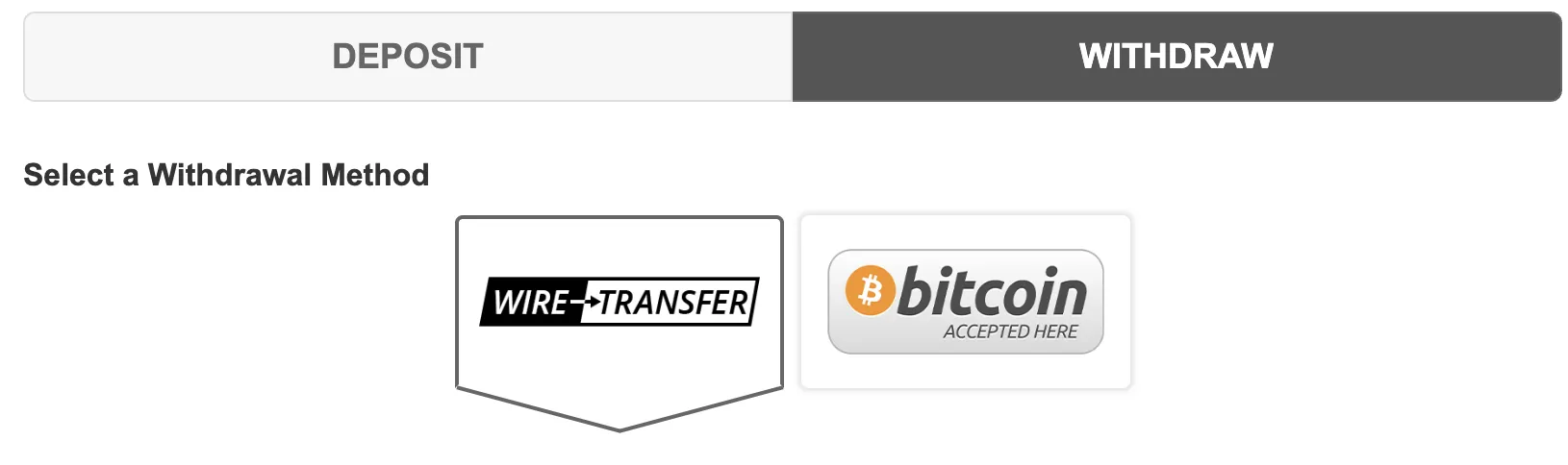 - Only two withdrawal methods