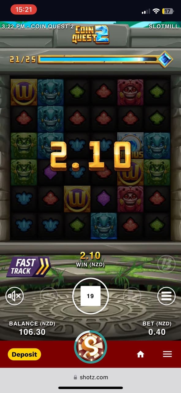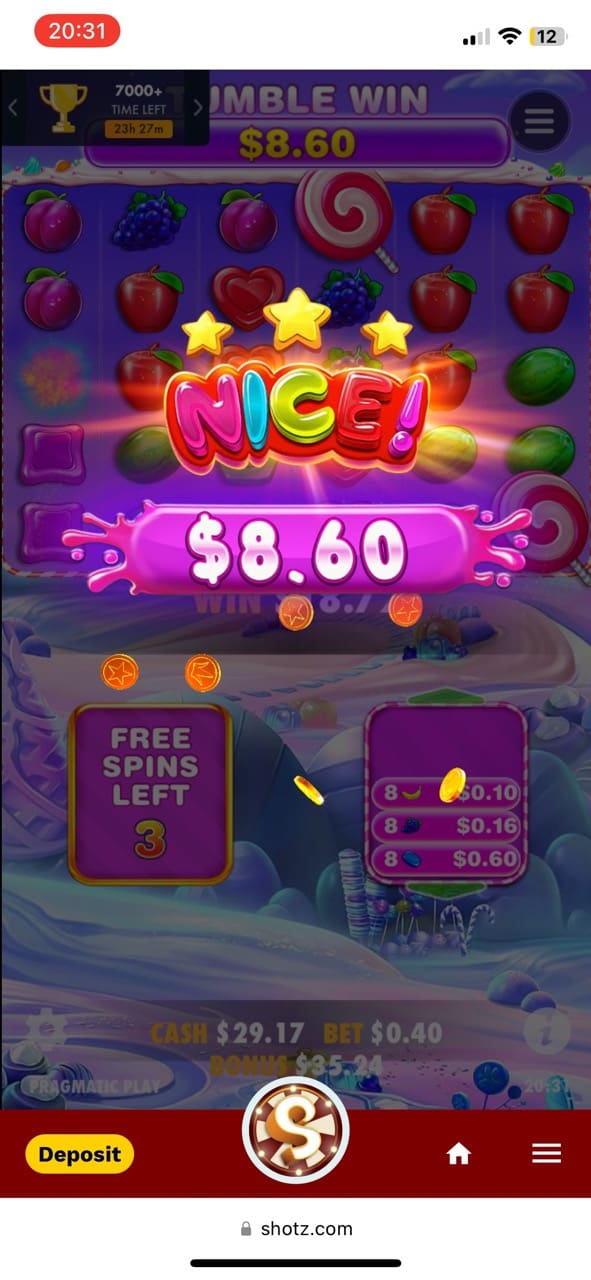 Testing our Shotz pokies, I managed to get 10 free spins in Rise of Olympus Origins and won a considerable cash prize of 11.86 NZD. Then I played Chilli Heat by Pragmatic Play and unlocked 3 respins several times, which resulted in a massive win of 42 NZD. Playing Sweet Bonanza 1000, I got 10 free spins and won 8.60 NZD. I also got 10 free spins in John Hunter and the Book of Tut and won 15.30 NZD. Some of the other games I was lucky with were Retro Sweets, with 7.59 NZD win and Ancient Tumble by Relax Gaming, in which I played 6 free spins and managed to win 57.82 NZD.